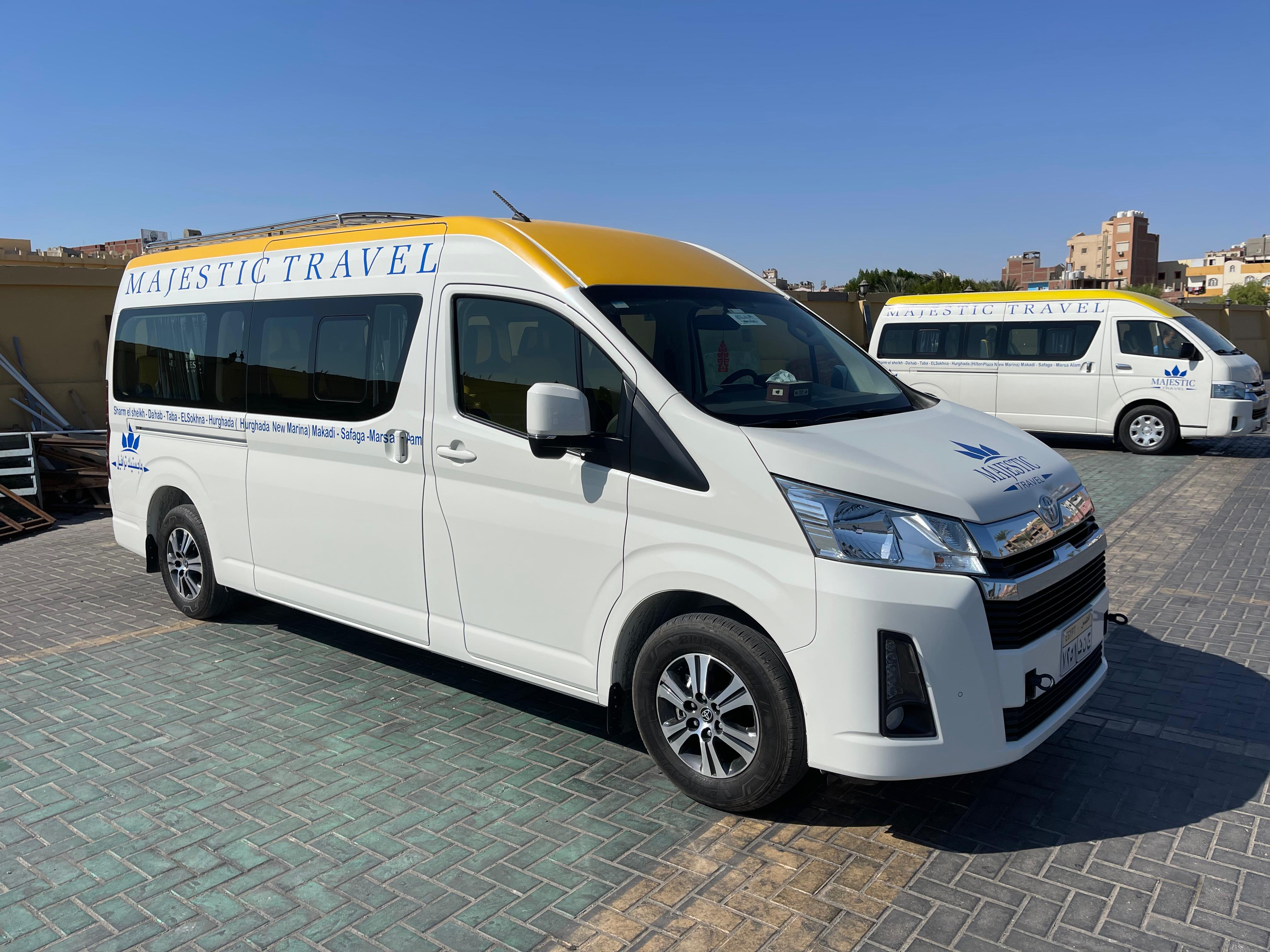 Our modern fleet of limousines, minibuses, and buses serves all major Egyptian destinations, including Cairo, Luxor, Hurghada, and Sharm El Sheikh.