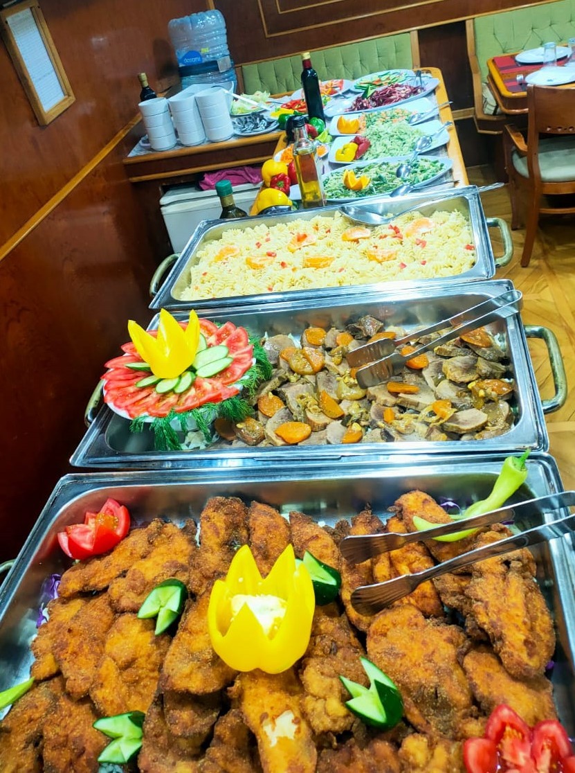 Features: Daily buffet meals, modern salon, two lounges, sun deck with bar
