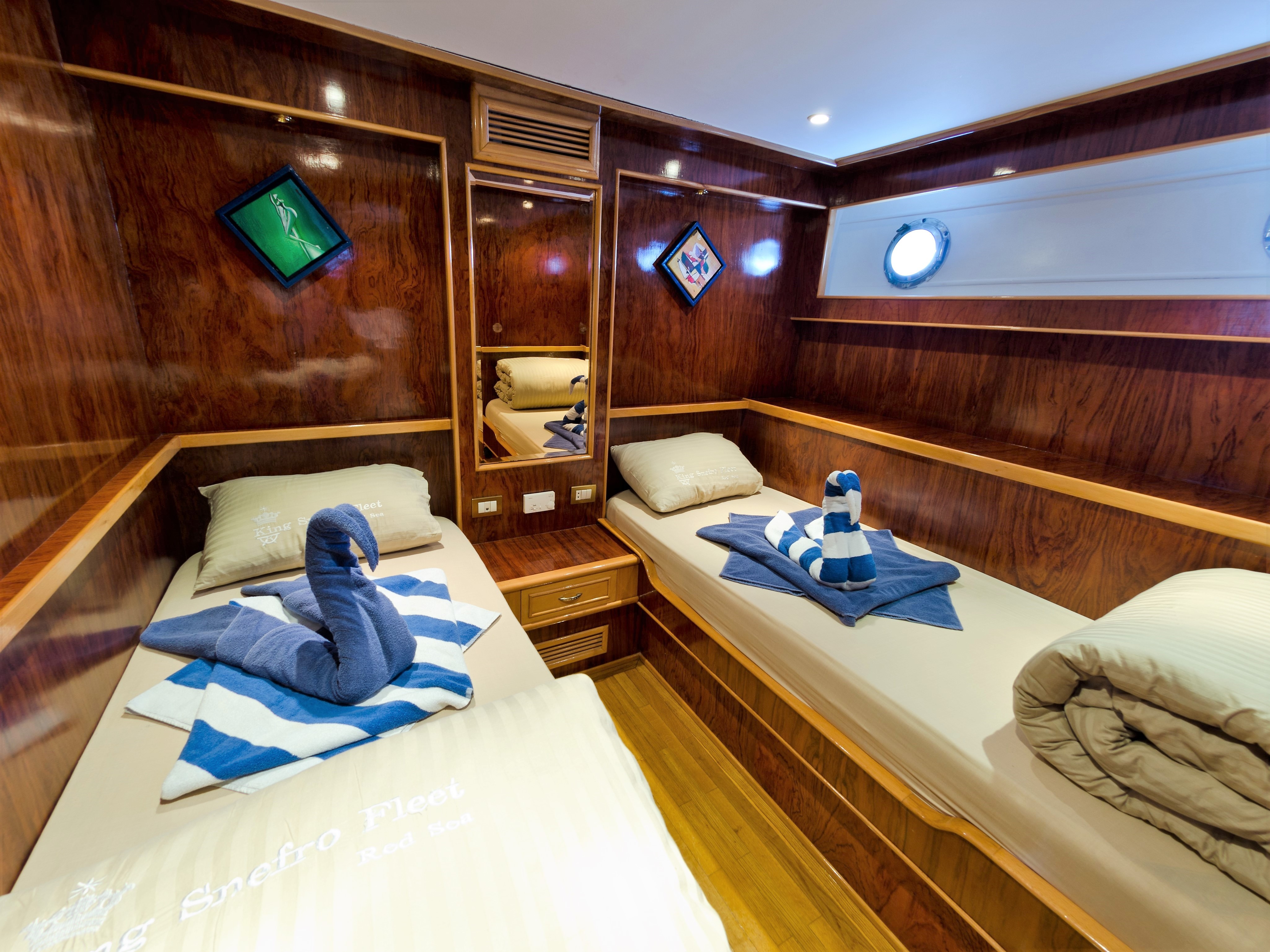 Sleek, stylish, and elegantly compact, Snefro Pearl is perfect for smaller groups seeking an intimate Red Sea escape. With just 6 en-suite cabins—including a master suite—this yacht offers the warmth of a private villa paired with the luxury of a boutique hotel.